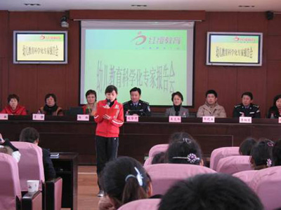 2009年3月6日,为了进一步促进我幼儿园家园共育,确保幼儿教育科学化,特邀北京红缨教育集团总园长杨瑛女士、王文兵老师、郝晓生老师来我园作专家报告及对教师进行专业培训工作。