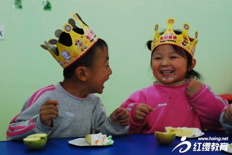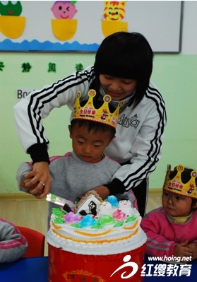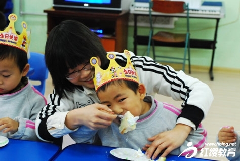 今天幼儿园小朋友们非常高兴,孩子们吃着甜甜的蛋糕,脸上露出灿烂的笑容,这是世纪星幼儿园子大型亲子活动后的第一次集体活动,也是幼儿园第一次为本月出生的小朋友过集体生日,我们园内定于每月的最后一周的星期四下午为本月出生的小朋友过生日。宝贝们既新奇又高兴。过生日的现场,充满了欢乐的气氛,每个孩子和老师们都沉浸在幸福之中,看到孩子们兴奋的表情,我们都实实在在的感受到了红缨教育“以人为本”“敬畏生命,呵护生命”的教育理念。其实,能够看到孩子们每天在红缨理念的教育下快乐的生活、学习、成长,这其实就是我们幼教人想要的幸福!