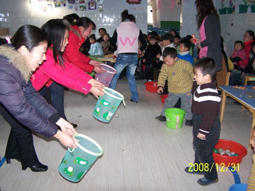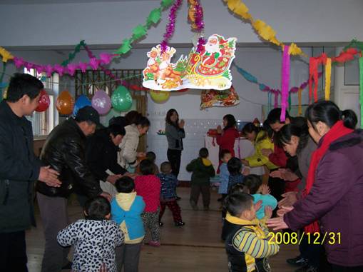 2008年12月31日,河南开封六四六幼儿园举行了元旦亲子联谊会,在老师们的巧手布置下,每个班都是张灯结彩,一片喜庆气氛。