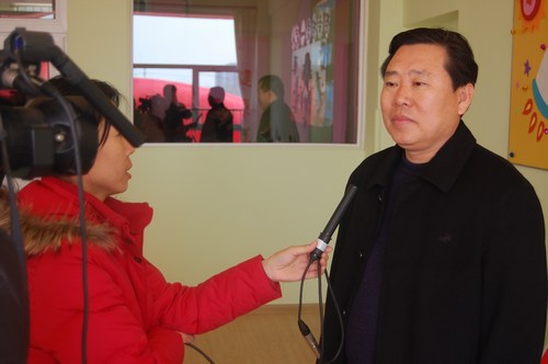 栾局长在幼儿园认真参观考察之后,接受了当地电视台的采访,安次第一幼儿园获得了教育局领导的高度称赞
