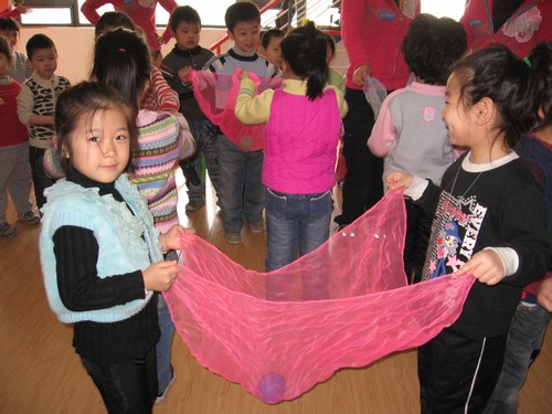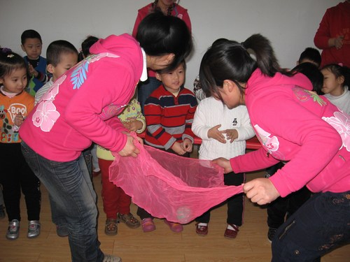 老师先教给我们玩摇元宵的游戏