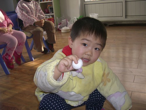 学前,大,中班制作元宵主要以摇为主,小班的小朋友则用自己的小手跟老师学习包元宵,当听完老师对元宵制作程序的讲解后,小家伙们个个撂起袖子,像模像样的制作起来,还真别小看了他们,做起元宵来可是非常认真,孩子们忙得热火朝天,老师与孩子们一起展开了一副制作汤圆的精彩画面,全园共制作元宵70多斤, 做好了汤圆,又来猜灯谜,看他们猜出灯谜后的那样子,别提多得意了。