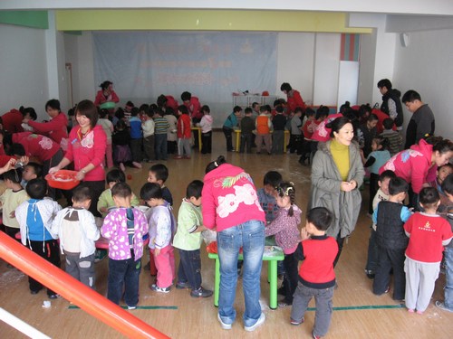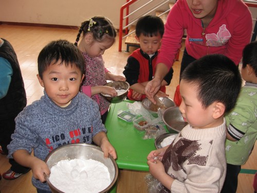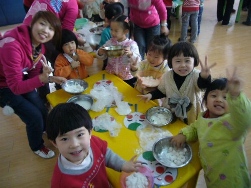2月9日上午9:00,吉点幼儿园举行以团团圆圆闹元宵为主题的多元活动,幼儿园里到处洋溢着新年的氛围,孩子们从家里带来了糯米面和元宵馅,有的家长还别出心裁的为孩子带来的巧克力,方糖等食品来替代元宵馅.