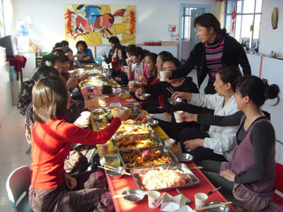 在本次活动中,徐园长以主教练的身份,将全体教职工分成三个团队,每个团队经过选举的方式选出各队的队长,再由队长带领队员进行各自团队口号、团队宣言等活动体验。队长发挥其主导和调控的作用,针对每队组员的不同特点,集结所有人的智慧和优势。在“温馨的午宴”活动环节中,进行团队展示,展示内容有“烹饪一条龙”、“推荐金牌菜”、“才艺大碰撞”、“随想与感言”等。