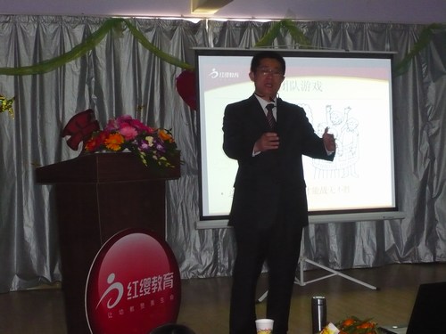 在整个的打造过程中,于园长用他的翩翩风度,专业讲师的水准打动着在场的每一个人:科学的红缨理念、积极的教师心态、团队精神、九点领导力、让爱传递、蓝丝带 、给老师过生日、嘉许,一个个环节像清泉流进了每一个老师的心。于昊天园长采用的是王红兵总裁与杨瑛总园长合二为一不同的打造方式,他让我更深切的感觉我们的红缨人真的就像王总说的那样在不断突破创新,没有什么不可能实现的。一天一夜的塑造里,我们的老师眼睛里流着泪,嘴上却带着笑,心中豁然开朗,勇于走上讲台上倾诉自己的感受。她们心灵的窗口打开了,彼此走的更近了,我和他们再没有一丝的隔阂,越了解了老师的心声,我越决心要做她们的援助者,守护者。我清楚地看到了一幼的辉煌的前景,这是一幼所有人带我的信心。我真心的承诺,一幼是老师们永远的家,而红缨将是我们大家永远的家。