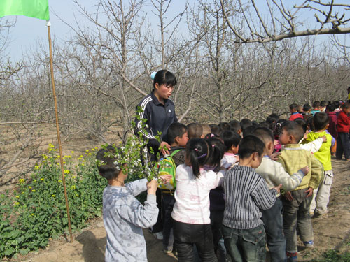 到了田野后,老师们给孩子讲春天的样子,让后孩子们去找春天,去发现春天的变化。孩子们兴奋的喊着:“我看见了小草从泥土妈妈的怀里探出头来了,小树的叶子长了出来,小花也渐渐开了。小草上结满了露珠,树木上的皮慢慢的绿了、软了。”