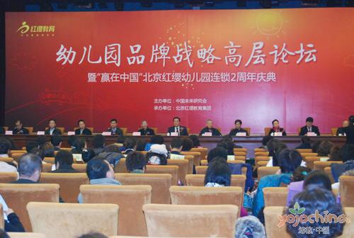 由中国未来研究会主办、北京红缨教育集团承办、幼教·中国网独家网络支持的“幼儿园品牌战略高层论坛暨北京红缨幼儿园连锁2周年庆典” 12月8日上午在全国人大常委会会议中心开幕。来自全国各地的300多名代表会聚一堂,共同探讨“品牌——21世纪幼儿园发展之道”议题。许多代表纷纷指出,当今社会,品牌已成为幼儿园经营与竞争过程中的核心问题,一个幼儿园要取得持续的成功,就要打造自己品牌的“品格”魅力和核心思想,从而建立领袖品牌。