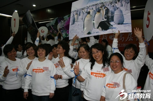 北京红缨教育集团的教育工作人员在联欢会献上节目《相约二OO九》